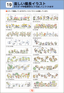出町書房 無料イラストお試しトップ > パソコン用資料集(CD-ROM版)のご案内 > [11]楽しい〔小学校〕のためのアイデアカット資料集 B(CD-ROM版)